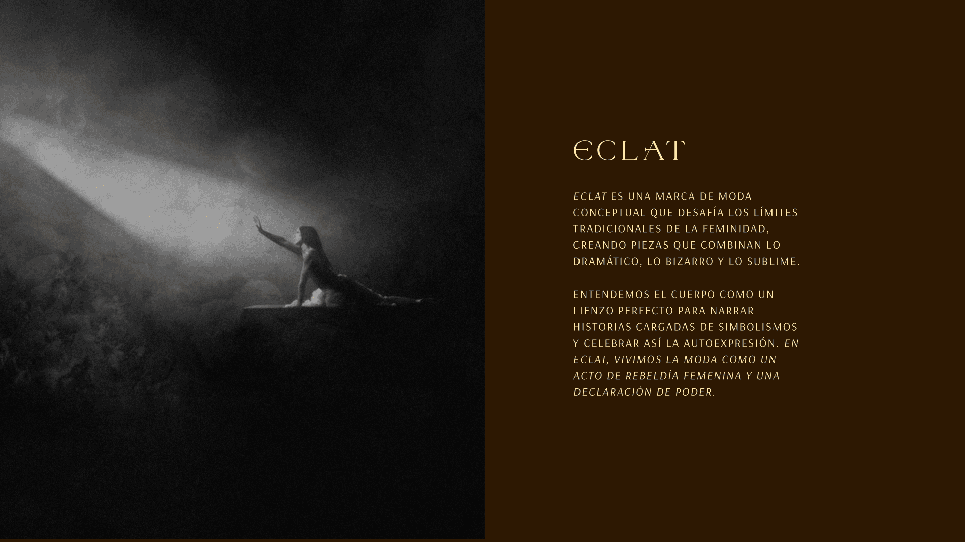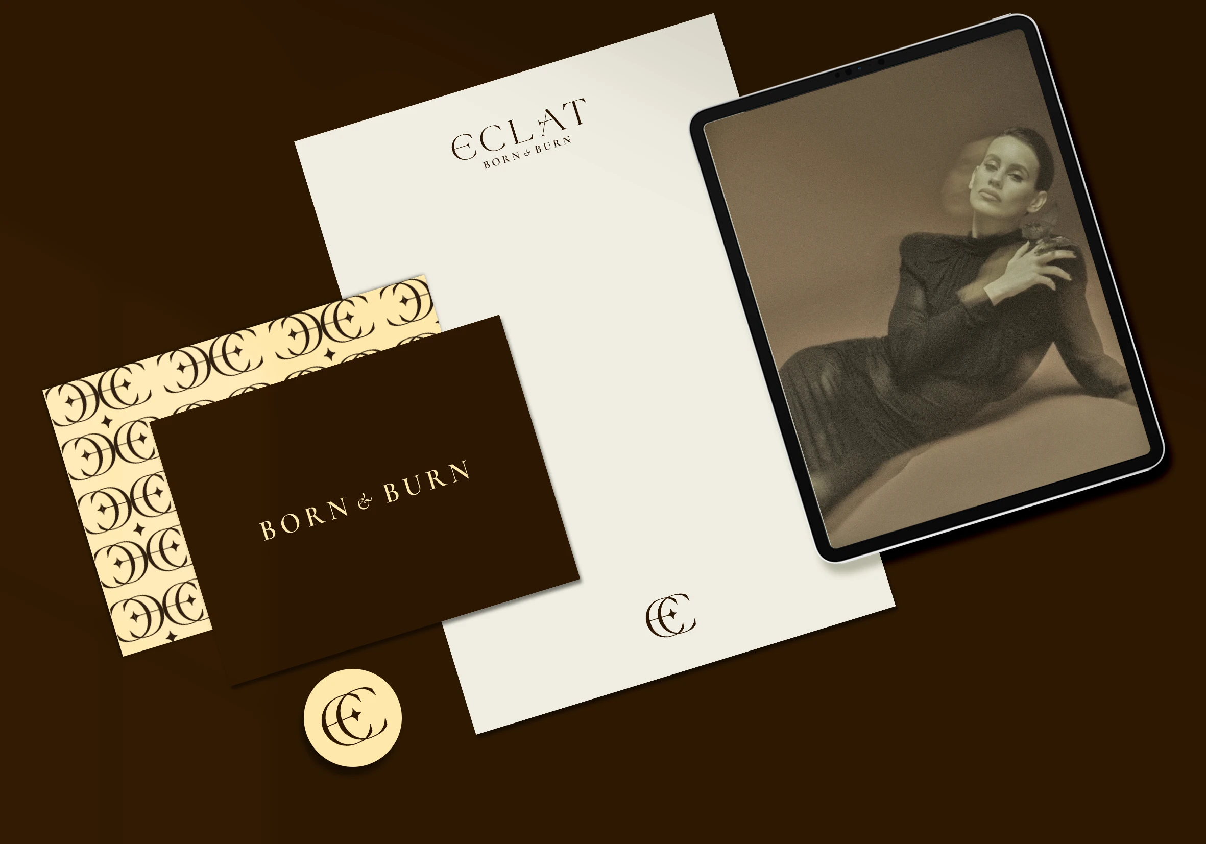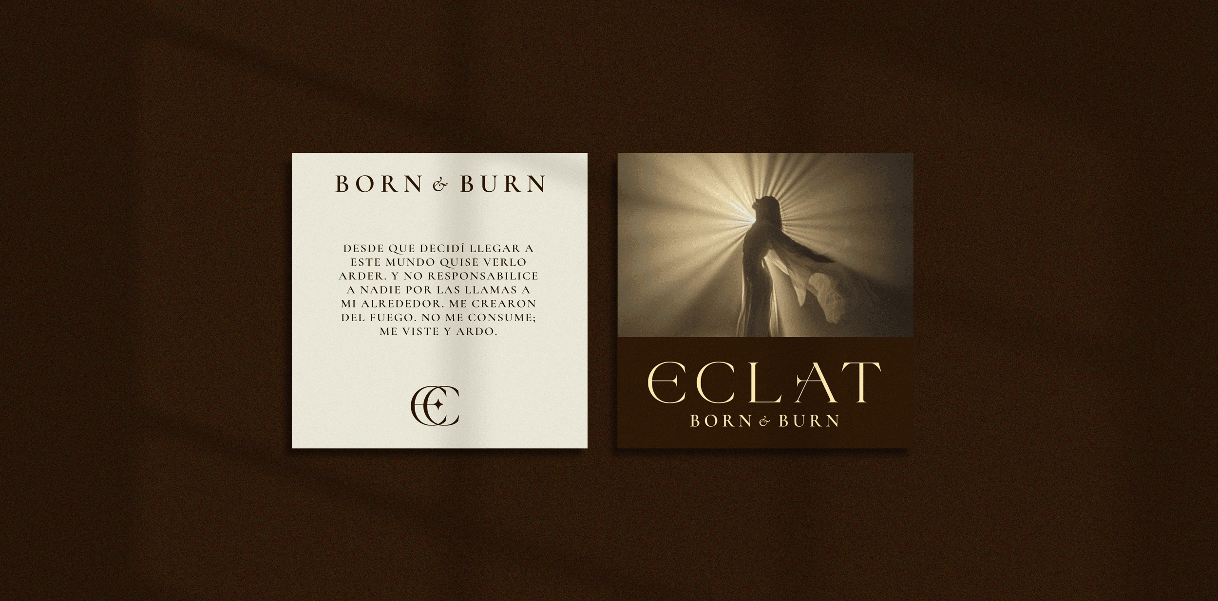 Eclat, que significa brillo, se redefine en este proyecto como una intensidad que nace desde el interior. No es un brillo superficial, sino una consecuencia de arder. Bajo el concepto Born & Burn, la marca se construye como una declaración de poder: una feminidad que no se contiene, que se transforma y se expresa desde el fuego propio.